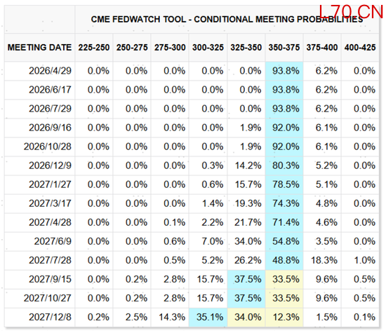图表:当前CME利率期货预计降息时点推迟至2027年9月