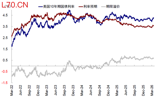 图表:10年美债利率预期抬升27bp,期限溢价基本持平