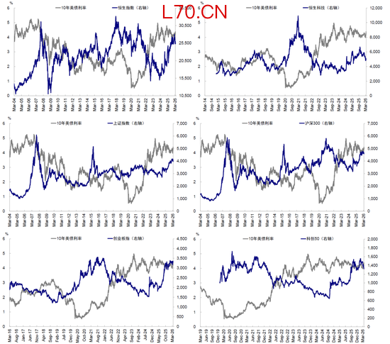 图表:对美债利率也是如此,恒科和A股成长更为敏感