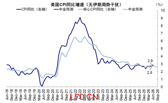 图表:不考虑伊朗局势的扰动,我们预计年内美国整体CPI同比高点为2.8%