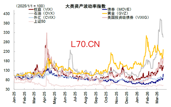图表:美股、美债、黄金等波动率自3月17日以来再度走高