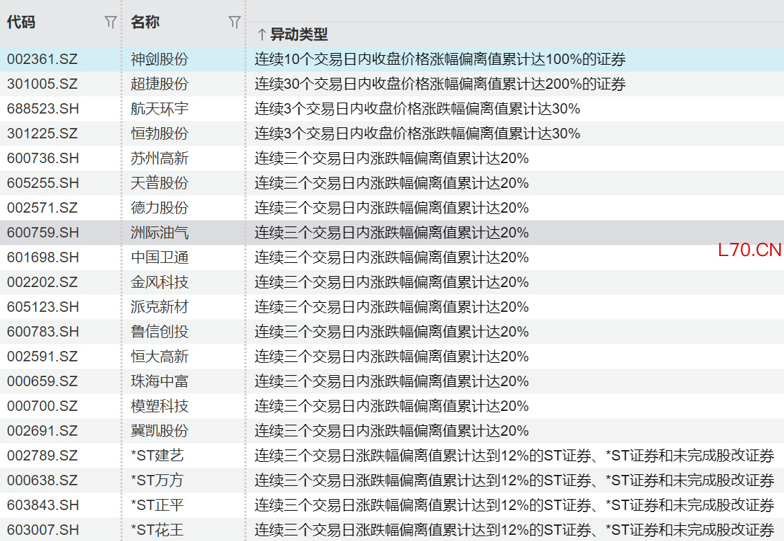 连续异动个股一览