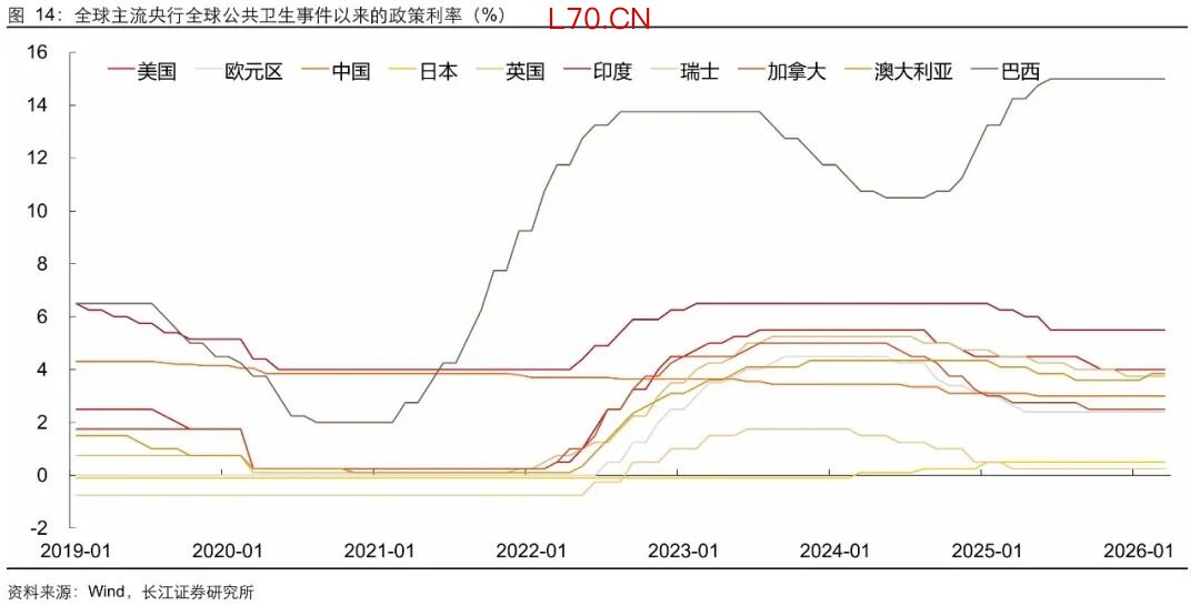 从当前全球货币政策走向来看,以美联储、我国央行以及欧央行为代表的全球主流央行都还处在降息周期之中,日本、澳大利亚和巴西三个特例,其中日本刚刚从“失去的三十年”深坑中爬出来,澳大利亚和巴西作为资源品出口国,仍处在资源品涨价的“痛并快乐”中,都并非是主流趋势。